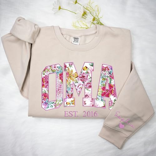 Chillever Custom Embroidered Grandma Sweatshirt, Floral Crewneck, for Grandmothers, Ideal for Nana, Mimi, Gigi 1