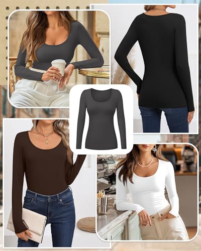• 4 Piece Scoop Neck Long Sleeve Shirt Design: the classic scoop neck design can highlight the neckline and make the neck look more slender and elegant; Suitable for fall and winter; Women's basic long sleeve tops can easily cope with various occasions