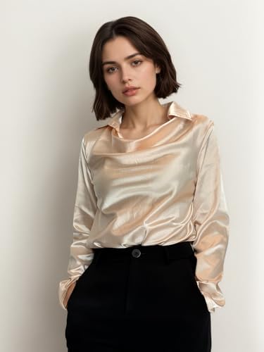 Women's Elegant Solid Satin Cowl Neck Blouse Long Sleeves Casual Business Dressy Shirts Office Work Ladies Top 6