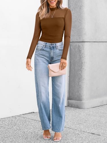 LILLUSORY Womens Long Sleeve Mesh Tops Mock Neck See Through Lace Shirts Sheer Going Out Sexy 2025 Fall Fashion Outfits 1