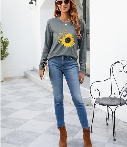 Women's Fall Sunflower T Shirt Cute Graphic Tees Casual Loose Long Sleeve Crew Neck Tunic Tops 4