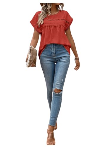 HOT ! SweatyRocks Women's Casual Short Sleeve Summer Top Round Neck Lace Crochet Blouse Swiss Dots Blouse Tops
