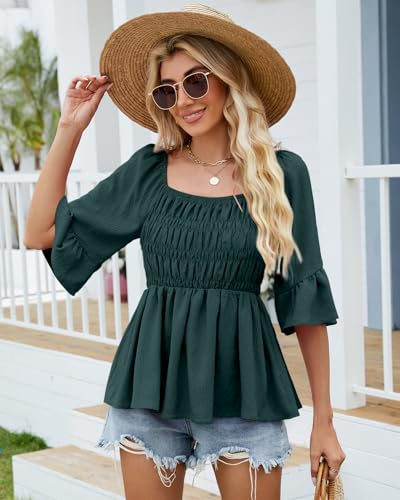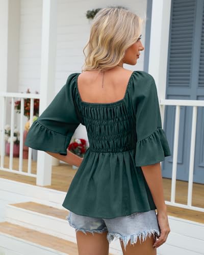 HEYTALALA Womens 3/4 Sleeve Tops Dressy Casual Square Neck Summer Peplum Blouses Ruffle Sleeve Babydoll Shirts 2025 Trendy 5
