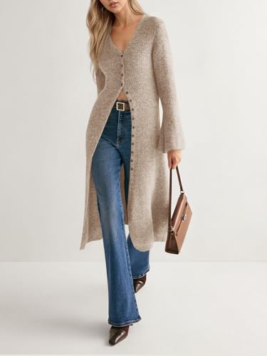 HOT ! Saodimallsu Womens Long Cardigan Sweaters Oversized Bell Sleeve Open Front Button Down Casual Knit Fall Midi Dress