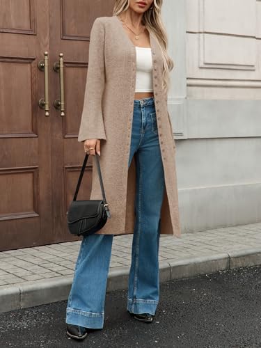 Saodimallsu Womens Long Cardigan Sweaters Oversized Bell Sleeve Open Front Button Down Casual Knit Fall Midi Dress 1