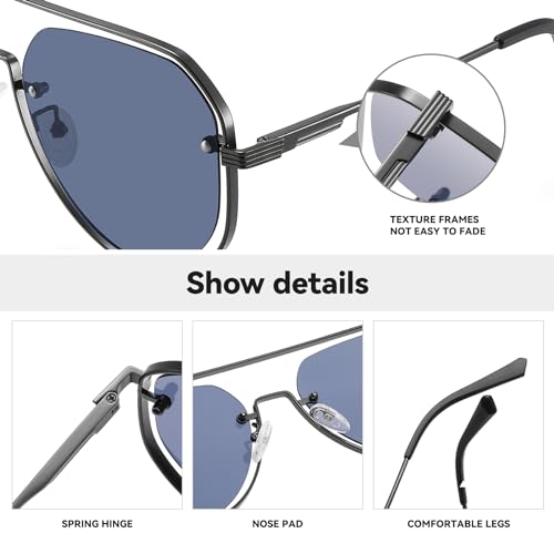• 【Retro Square Hollow Design】Sunglasses are independently created by our designers throughout the entire process, using electroplated frames and hollow designs to highlight the coolness of summer. The straight connected upper frame design highlights a calm temperament, while the curved shape of the lower half frame highlights its personality