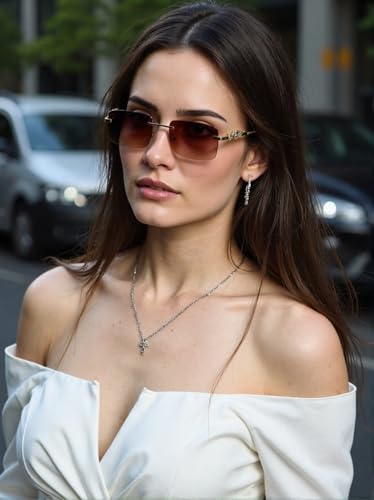 • Durable & Lightweight Build Built for all-day comfort, these rimless rectangle sunglasses feature adjustable nose pads, shatter-resistant lenses, and sturdy metal hinges. A stylish, ultralight option for selfies, parties, festivals, or everyday wear.