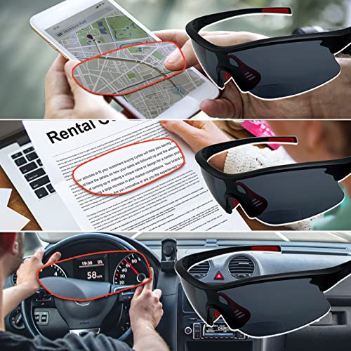 • EASE OF USE - Reading glasses + bifocal One piece Shield sunglasses combined are convenient. It's just that simple. No longer will you need to carry multiple pairs of glasses around with you.