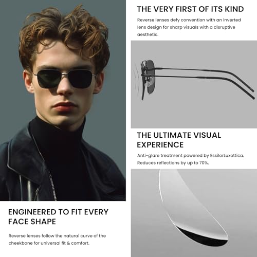DUCO Reverse Lenses Square Sunglasses for Men Women,Retro Polarized Sun Glasses Classic Shades Double Bridge DC3046 2