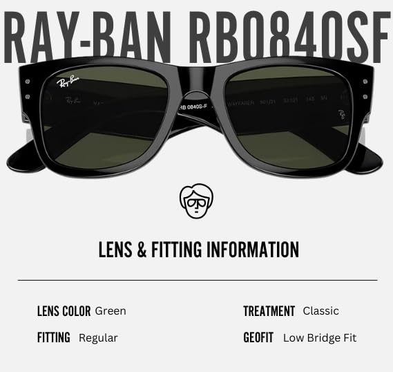 More information about Ray-Ban RB0840SF MEGA WAYFARER LOW BRIDGE FIT Square Shaped Sunglasses for Men & Women with Official RAYBAN Eyewear Kit