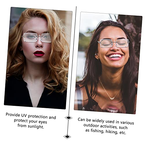 PartyKindom 1pair Fashion Rimless Sunglasses for Outdoor Activities Uv Protection Unique Style for Travel Shopping and Parties Transparent Lenses Comfortable Fit Photo Prop Accessory 3