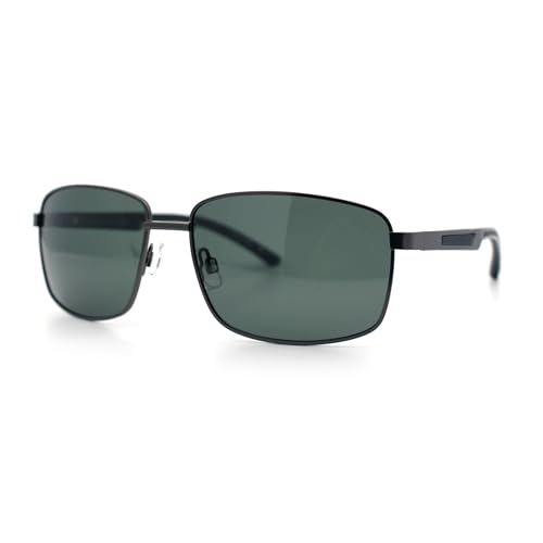 SA106 Polarized Mens Rectangular Metal Rim Gentlemanly Wrap Curved Sunglasses 1