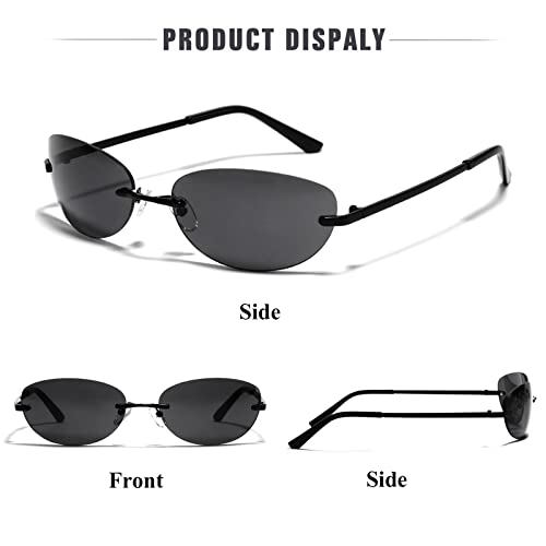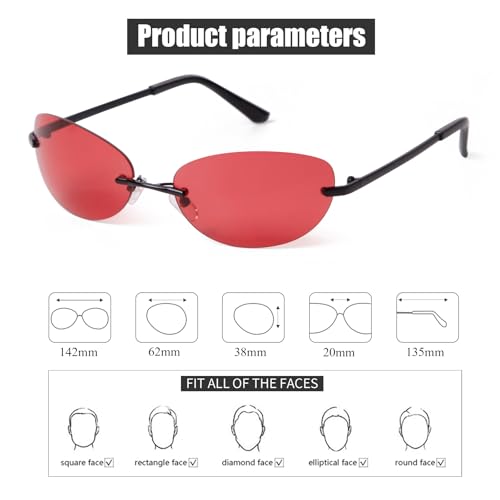 • Y2K Retro Sunglasses: These vintage 90s rimless oval sunglasses shades are a different from classic color frames. Put on this sunglasses, which make your great style shine. Edgy looks fused with classic design and a street-wear feel.