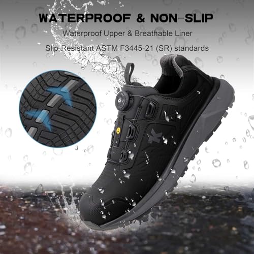 ESD Shoes for Men, Alloy Toe Safety Freelock Fit Quick Lacing System Static Proof, Waterproof, Puncture Proof, Oil and Slip Resistant, Lightweight Industrial Work Shoe Sneakers 3