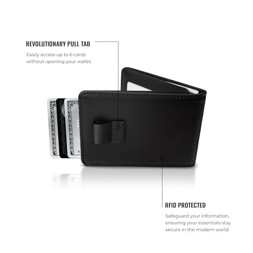 HOT ! Kings Loot Wallet for Men | Minimalist Slim RFID Blocking Leather Design with Cash Pocket & Card Pull Strap | Holds 1-15 Cards | Stylish & Durable Wallets (Onyx Black)
