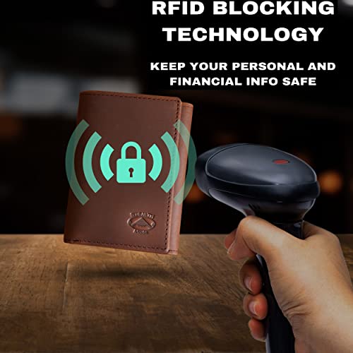 Stealth Mode Trifold Leather Wallet for Men with ID Holder and RFID Blocking (Brown) 1