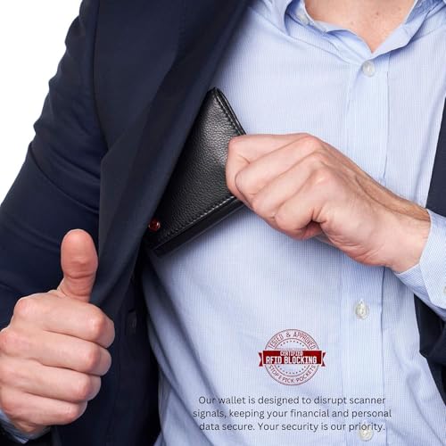 • ADVANCED RFID PROTECTION TECHNOLOGY: Built-in RFID blocking technology creates a protective barrier around your credit cards and personal information, preventing electronic pickpocketing and unauthorized scanning attempts. This invisible shield keeps your financial data secure while you go about your daily activities. The protection is seamlessly integrated into the wallet's construction without adding bulk or affecting functionality, giving you peace of mind in our increasingly digital world.