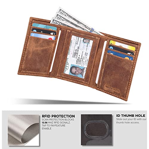 Tri fold Leather Wallet for Men with RFID | Slim Wallets for Men with 1 ID and 6 Credit card slots | Front Pocket Minimalist 7