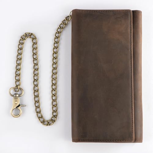 More information about Mens Chain Wallet, Biker Trucker Wallets with Long Strong Chains, Genuine Leather Trifold Billfold, Snap, Brown