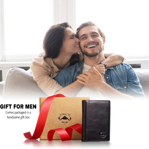 More information about Stealth Mode Men's Slim Front Pocket Wallet - RFID Blocking, Thin Minimalist Bifold Design, Genuine Leather - ID Badge Window and 5 Sleeves for Money, Credit and Debit Cards, Driver's License - Black