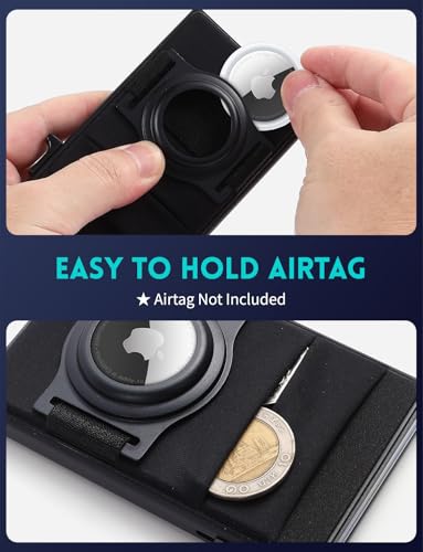 Magsafe Wallet with AirTag Holder, Magsafe Slim Wallet for iPhone 15/14/13/12 Pro Max Plus Mini, Minimalist Credit Card Holder with Elastic Pocket for Cash,Coins&Keys, Magsafe Pop up wallet 5