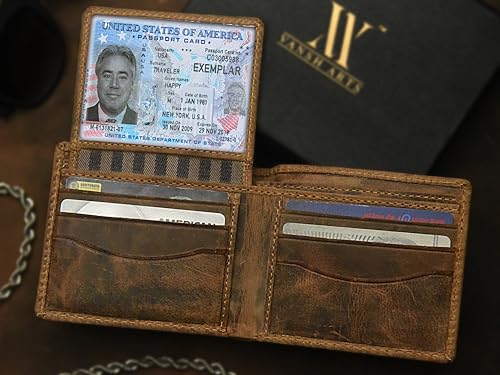 Leather Wallets For Men- 3D Embossed Eagle with USA Flag Design Bifold Leather Wallet With RFID Protection Two Cash Pockets, Two Hidden Slots And Nine Card Slots (Vintage Tan) 6