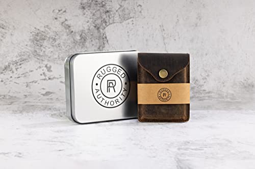 Brown Leather Card Holder with RFID Protection. Distressed leather Business Card Holder or Credit Card Wallet for Men or Women for your pocket or purse 7