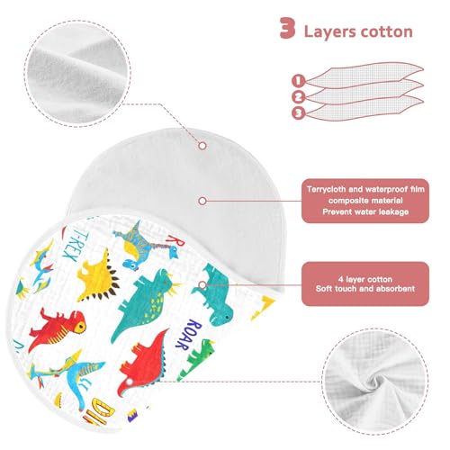 xigua Colorful Dinosaurs Muslin Baby Burp Cloths Set of 1, Super Soft & Absorbent Burping Rags, Cotton Burp Clothes Shower Gift for Newborn, Baby Girls and Boys 4