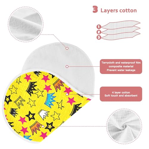 xigua Crowns and Stars Muslin Baby Burp Cloths Set of 4, Super Soft & Absorbent Burping Rags, Cotton Burp Clothes Shower Gift for Newborn, Baby Girls and Boys 5