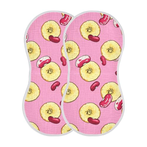 J JOYSAY Banana Bean Pink Baby Burp Cloths for Boys Girls Large 22''x11'' Cotton 4 Layer Baby Bibs for Baby Sensitive Skin one sizex1 2