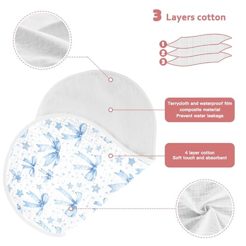 xigua Blue Bows Muslin Baby Burp Cloths Set of 2, Super Soft & Absorbent Burping Rags, Cotton Burp Clothes Shower Gift for Newborn, Baby Girls and Boys 5