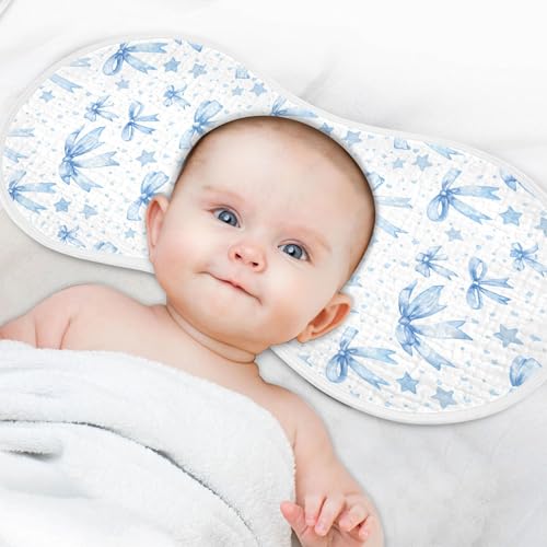 xigua Blue Bows Muslin Baby Burp Cloths Set of 2, Super Soft & Absorbent Burping Rags, Cotton Burp Clothes Shower Gift for Newborn, Baby Girls and Boys 6