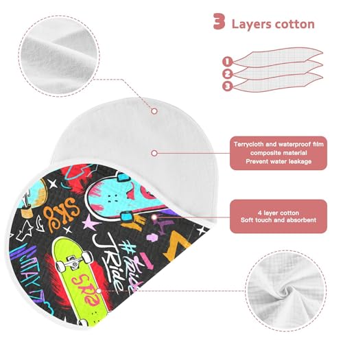 xigua Colorful Skateboards Muslin Baby Burp Cloths Set of 4, Super Soft & Absorbent Burping Rags, Cotton Burp Clothes Shower Gift for Newborn, Baby Girls and Boys 7