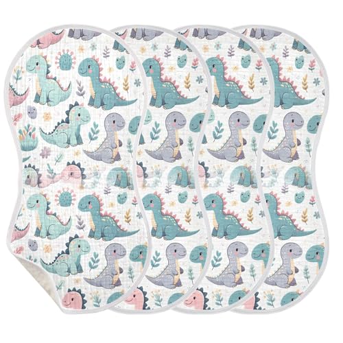 Kigai Cute Little Dinosaurs Baby Muslin Burp Cloths 2 Pack, Soft 4 Absorbent Layers Cotton Burp Rags for Newborn Girls Boys 4