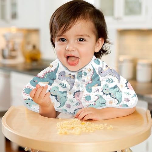 Kigai Cute Little Dinosaurs Baby Muslin Burp Cloths 2 Pack, Soft 4 Absorbent Layers Cotton Burp Rags for Newborn Girls Boys 5