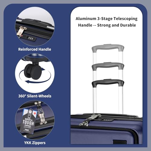 20 inch Small Carry On Luggage Front Open with Laptop Pocket, ABS+PC Hard Shell Suitcase with Spinner Wheels TSA Lock & YKK Zipper, 20in/Toiletry Bag/Handbag, Dark Deep Navy Blue 4