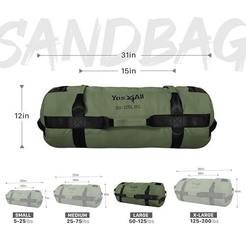 Yes4All Sandbags for Working Out, Adjustable Sand Bags for Weight Training with Handles, Multiple Colors & Sizes 5-200lbs 5