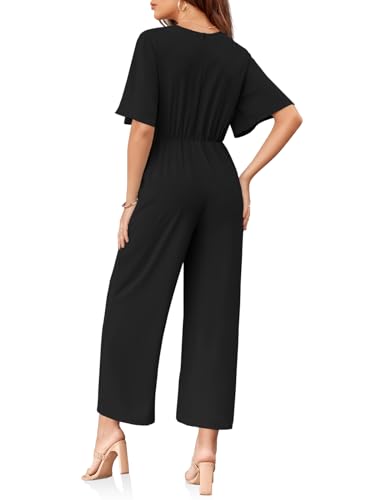 Cicy Bell Women's Elegant V Neck Jumpsuits Dressy Casual Short Sleeve Wide Leg Long Pants Rompers 1