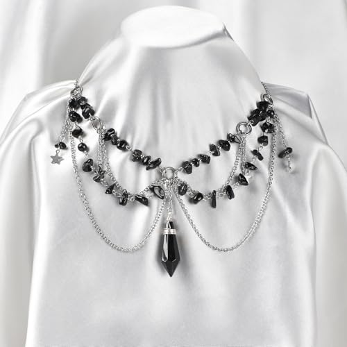 More information about MOSTORY Black Ren Faire Necklace - Gothic Layered Necklace for Witch Dark Crystal Beaded Choker for Women Halloween Renaissance Ren Faire Goth Outfit Witch Aesthetic Elven Cosplay