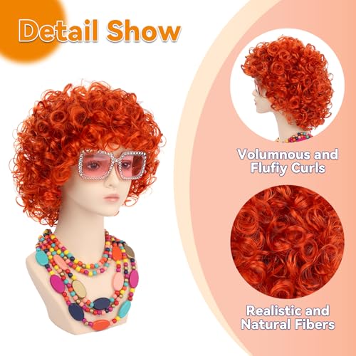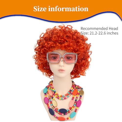 More information about Women Roper Curly Orange Red Cosplay Wig with Necklace Earrings and Sunglasses for Women Hallween Costume Wig