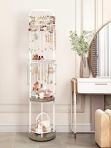 • 【Rotating Jewelry Holder Organizer】With the 360° rotating design, the jewelry holder allows your jewelry to be viewed from all angles, making it perfect for displaying and easy access to what you want. The floor jewelry display stand effectively free up your countertop spaces and keep all your jewelry and skincare products in one location.