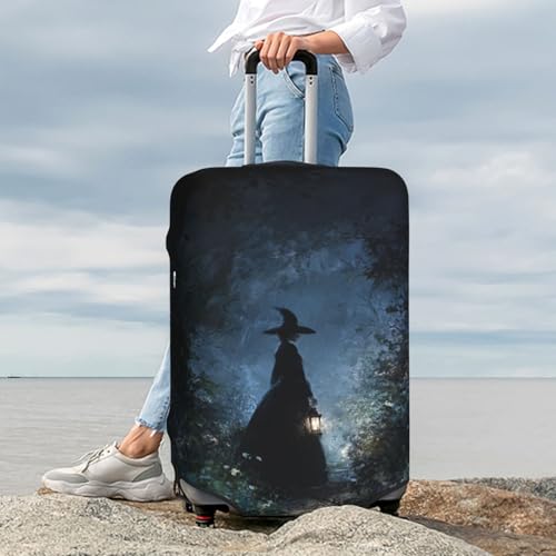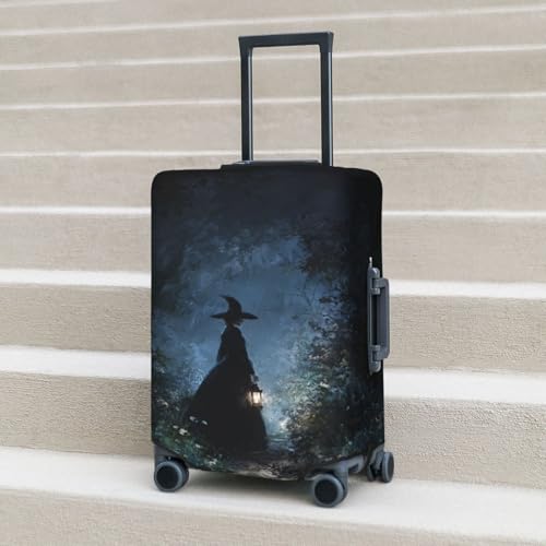 HOT ! Forest Night Witch Walking With Lantern Elastic Travel Luggage Covers Dustproof Scratch-Resistant Suitcase Protector Fit 22-24 Inch
