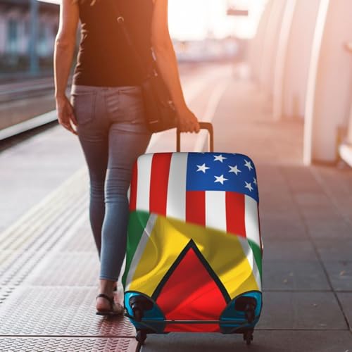 Travel Luggage Cover America Flag And Guyana Flag Fashion Washable Baggage Suitcase Protector Fit For Luggage Small 7