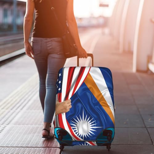 Travel Luggage Cover America Flag And Marshall Islands Flag Fashion Washable Baggage Suitcase Protector Fit For Luggage X-Large 7