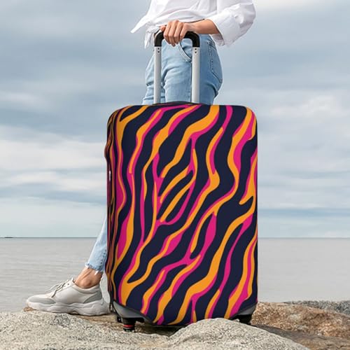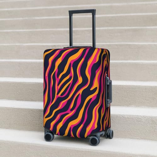Striped Zebra Skin Lines Neon Hues Elastic Travel Luggage Covers Dustproof Scratch-Resistant Suitcase Protector Fit 22-24 Inch 1