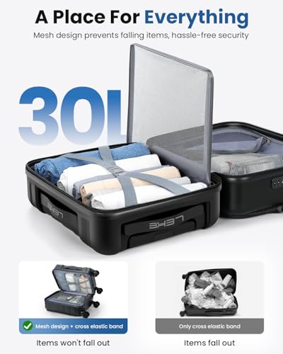 • Smart Organizer Pockets: Designed for efficiency, this hardside carry on luggage has 3 external pockets for a 15.6-inch laptop and essentials. Inside, mesh and elastic straps keep items secure and organized, preventing spills when opened