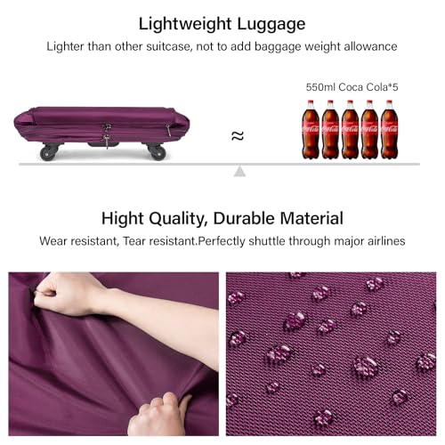 Hanke Suitcases with Wheels Expandable Foldable Luggage Bag Suitcase Collapsible Rolling Travel Bag Duffel Bag for Men Women Lightweight Suitcases without Telescoping Handle, Purple 6