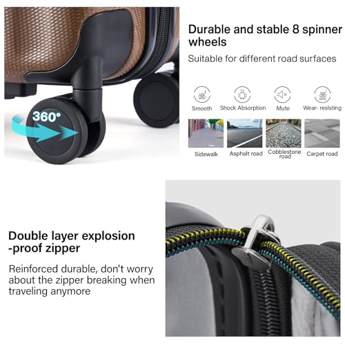 Hanke Expandable Hard Shell Luggage Sets 2 piece Carry on Luggage with Wheels Suitcases Lightweight Checked TSA Luggage Rolling Large Suitcase Travel Luggage Bag Woman Men 20/29 Inch(Brown) 6