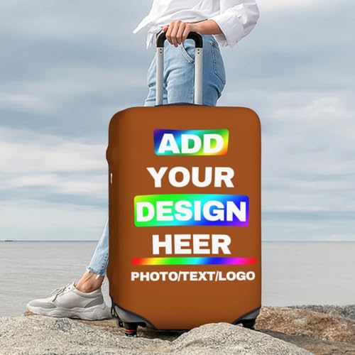 Custom Personalized Travel Suitcase Cover with Photo Text Name Logo - Double Sided Elastic Washable Baggage Cover 7