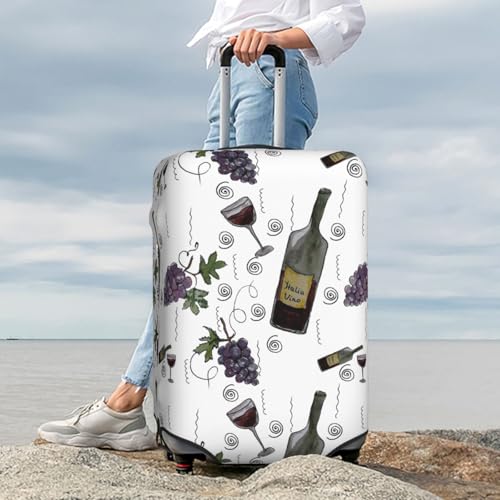 HOT ! Wine Bottles And Grapes Print Luggage Cover For Suitcase,Washable Elastic Travel Suitcase Protector With Zipper Closure And Bottom Buckle – Fits 18-32" Luggage-Large